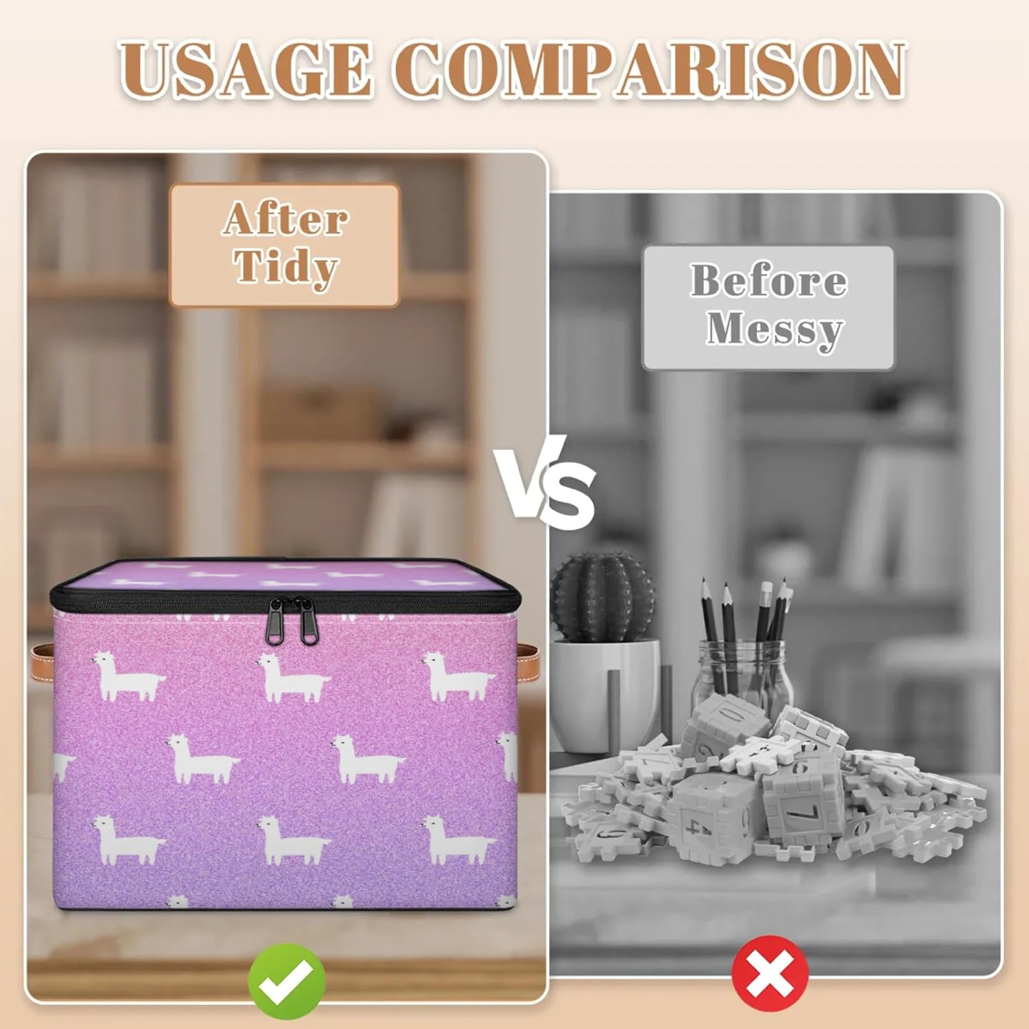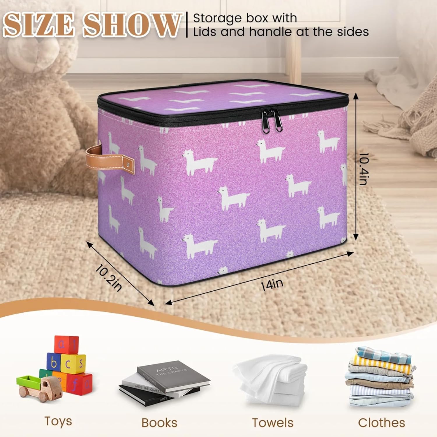 Stay Organized with Our Premium Fabric Storage Bin! Keep your home, closet, or office clutter-free with our large fabric storage bin with a double-zippered lid. Made from high-density 100% polyester (2mm thick), this storage box is both lightweight and durable, ensuring long-term use without wear and tear. The reinforced leather handles make it easy to carry, while the built-in wire frame keeps its shape whether full or empty. Why Choose Our Storage Bin? ✔ Space-Saving Foldable Design – Collapses flat when not in use, perfect for small spaces. ✔ Easy-Access Double Zipper Lid – Quickly store and retrieve items without hassle. ✔ Multi-Purpose Organizer – Ideal for clothes, toys, blankets, toiletries, pet supplies, and more. ✔ Perfect for Any Room – Fits seamlessly in kitchens, bathrooms, nurseries, dorms, RVs, and cars. ✔ Simple Maintenance – Hand wash or spot clean for easy care.
