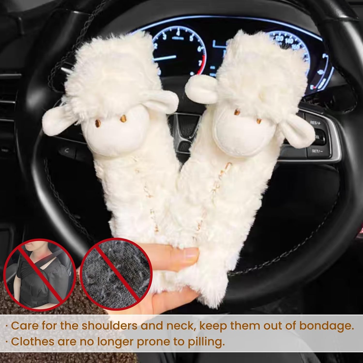 • ☆【Material】 Our cute car seat belt cover pads are made of high-end faux sheepskin wool which is soft and comfortable to use. Thick plush brings you comfort and warmth.