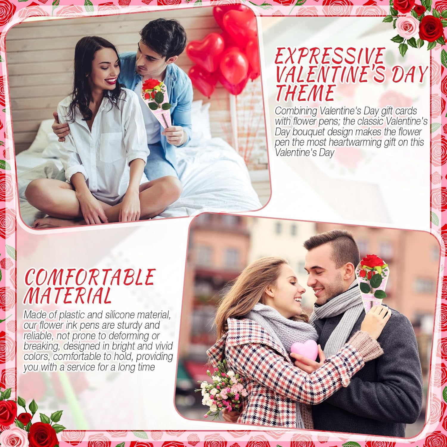 Features: Show expression and thoughtfulness with our novelty, Valentine's Day pens with flowers. Each piece of the pens from this bulk is a special and cherished present, provided to impress anyone lucky enough to receive it. Adorned with a red rose at the top, the cute and attractive design of these artificial rose flower pens adds an features of sophistication to your stationary. Specifications: Material: plastic Color: red, green Size: Pen: 11.81 x 5.91 x 3.94 inches/ 30 x 15 x 10 cm Card: 10.43 x 5.04 inches/ 26.5 x 12.8 cm Package includes: 24 x Artificial rose pens 24 x Gift cards Notes: Manual measurement, please allow slight errors on size. The color may exist a slight difference due to different screen displays