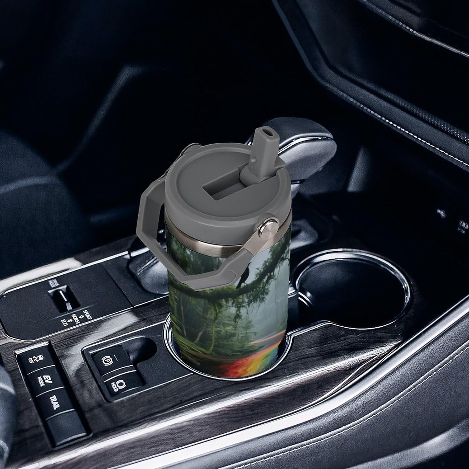 Whether you're on a long drive, a busy commute, or an outdoor adventure, staying hydrated is crucial. Our large-capacity car tumblers featuring the Rainbow River Rainforest pattern were developed with this need in mind. They're the perfect solution for on-the-go hydration, ensuring a smooth and comfortable journey. With an impressive 30-ounce capacity, this insulated stainless steel travel tumbler easily meets your frequent hydration needs, from your morning commute to your after-get off work workout or even a full-day road trip. Without constantly searching for water, you can focus on the road ahead and say goodbye to thirst. Whether you're sweating it out on a scorching summer day or sweltering in your car on a dry winter night, staying hydrated helps you perform at your best. We understand your appreciation for quality and aesthetics, and our car tumblers feature unique designs that complement any vehicle's interior, exuding understated elegance. More than just a practical tool, they're the perfect finishing touch, adding a touch of style to your vehicle's interior.