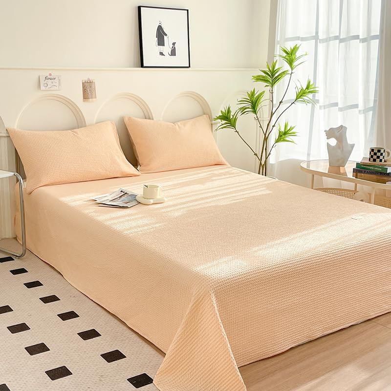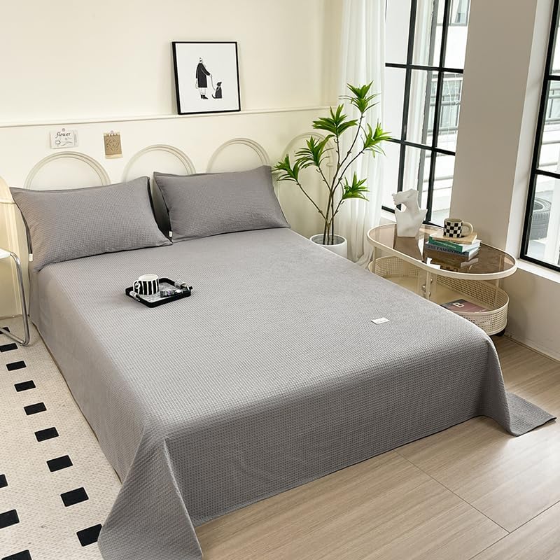The luxury bed sheet is super soft and cozy to touch with the grade A cotton fabric. It is skin-friendly and suitable for baby, kids, adults and seniors. The creative waffle weave design is sophisticated and graceful, it is breathable and offers you ultra comfortable feeling. The sheet will update your bedroom and accent your special taste. It is a perfect gift for birthday, Christmas, Mother's Day, Father's Day and Thanksgiving Day.Size Information:Twin Size: 1 x flat sheet with 63" wide x 94" long (160 x 240 cm).Queen Size: 1 x flat sheet with 94" wide x 96" long (240 x 245 cm).King Size: 1 x flat sheet with 94" wide x 106" long (240 x 270 cm).