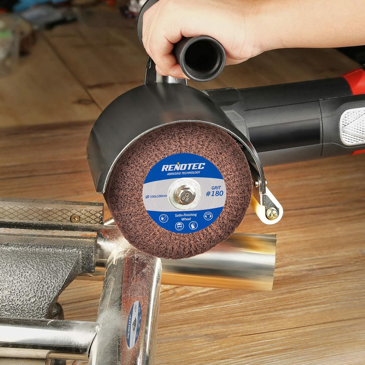 The RENOTEC 4" Polishing Wheel Pro Pack (100x100mm, Aluminum Oxide, Premium Wool, Grit 280/400/800/1000) is designed for professionals and DIYers who need a reliable and efficient solution for metal surface treatment, from brushing to achieving a mirror-like finish. This comprehensive set features four grits, each chosen to progressively refine metal surfaces, delivering a flawless finish with each step. Starting with Grit 280, the wheels help you tackle rougher surfaces and remove imperfections, followed by Grit 400 to smooth out the texture. Grit 800 further polishes the surface, and finally, Grit 1000 provides the high-gloss, mirror-like finish you’re looking for. The aluminum oxide abrasive ensures effective stock removal, while the premium wool material offers smooth, even polishing without leaving scratches or swirl marks. Perfect for a variety of metalworking applications, including automotive restoration, industrial equipment, and other metal projects, the RENOTEC Polishing Wheel Pro Pack helps you achieve professional-grade results. Designed to fit most standard angle grinders, these wheels are easy to use, providing a seamless solution for all your metal polishing needs. With this Pro Pack, you can complete all your metal surface treatments—from initial brushing to final mirror polishing—using just one convenient, cost-effective kit, saving both time and money while achieving high-quality finishes.