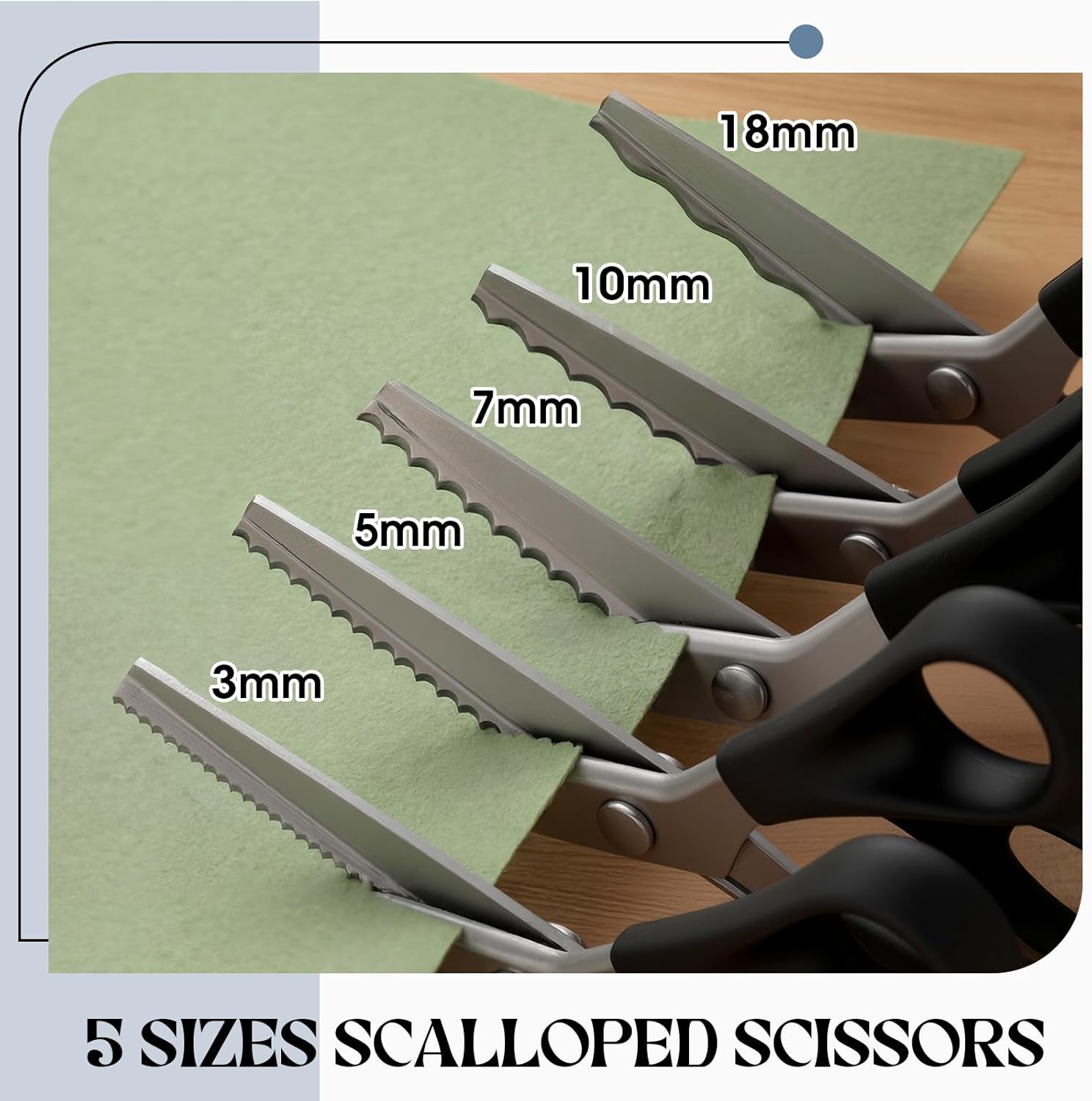 Features: Engineered for accuracy, these pinking shears maintain uniform zig zag patterns with every cut. Whether trimming seams or crafting decorative edges, they deliver professional grade results for sewers of all skill levels. The pinking shears' precise zig zag design prevents fabric edges from unraveling. Whether working with delicate linings or thick materials, each cut remains clean and uniform, enhancing the durability of your sewing projects. Specifications: Material: Saw tooth: stainless steel Handle: aBS material Color: black Size: about 23 cm/9.3 inches Package includes: 1 X 3mm serrated scissors 1 X 5mm serrated scissors 1 X 7mm serrated scissors 1 X 10mm serrated scissors 1 X 18mm serrated scissors Notes: Manual measurement, please allow slight errors on size. The color may exist a slight difference due to different screen displays