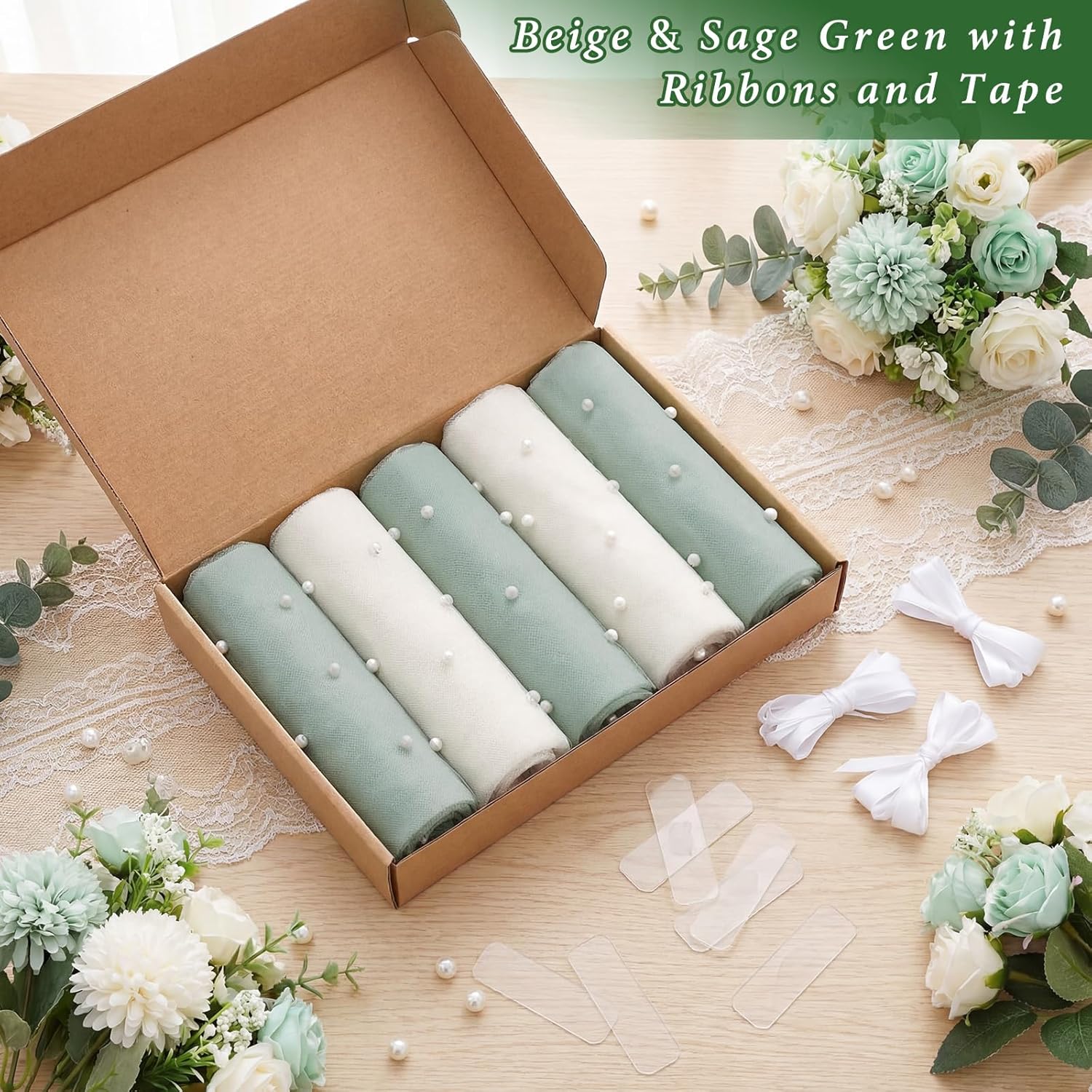 Features: Versatile and suitable for various settings, this sage green chair sashes isn't limited to weddings, it's also suitable for engagement parties, bridal showers, birthday parties, and even decorating your home dining room. Our boho chair sashes for wedding are washable and easy to care for, reusable. Its excellent durability allows this beautiful set to be reused for multiple events. Pair it with flowers or greenery to create different themed, elegant atmospheres. Specifications: Material: polyester Color: beige and sage green Size: 96 x 8 inches / 244 x 20 cm Package includes: 16 x Wedding pearl chair sashes Notes: Manual measurement, please allow slight errors on size. The color may exist a slight difference due to different screen displays