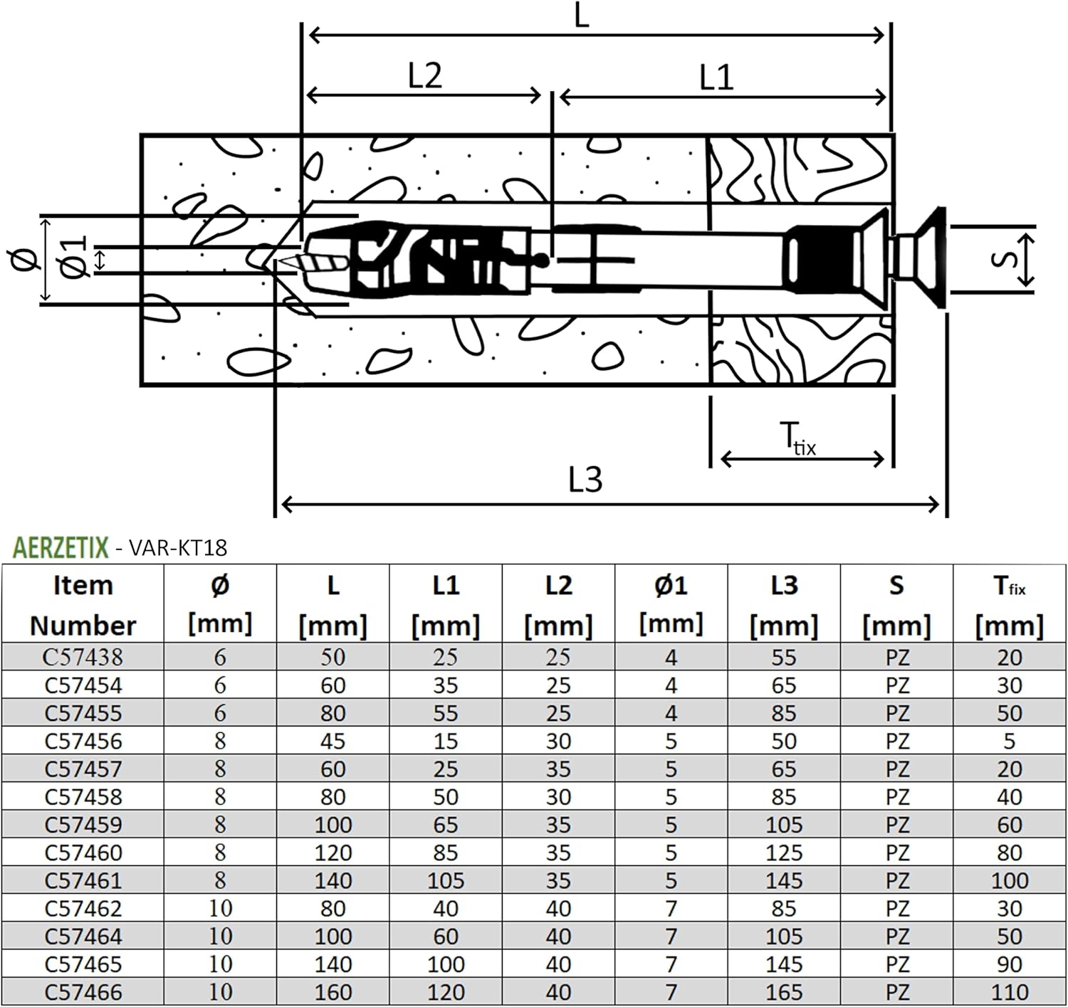| Size | Ø8x140 mm - 20 piezas |