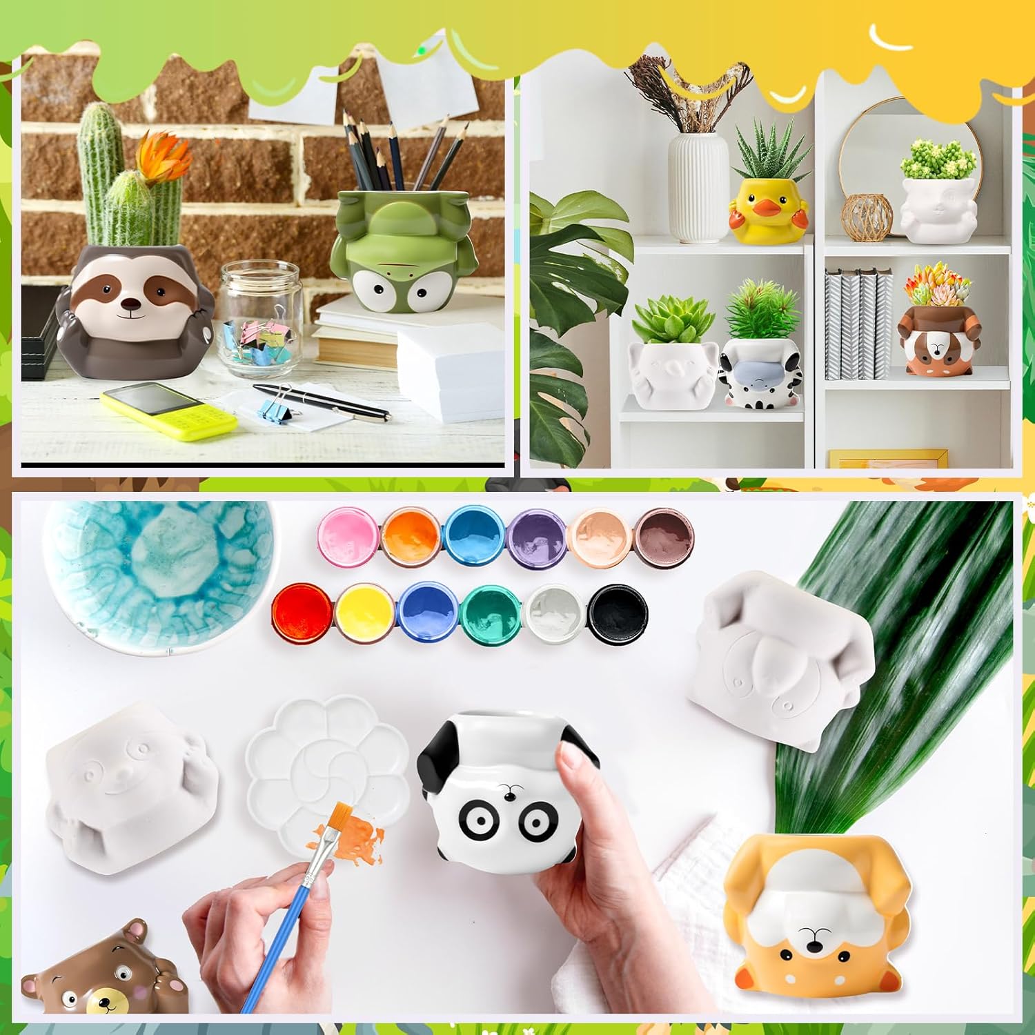 Features: Create with purpose: This diy project offers more than just creative satisfaction. It allows you to produce functional art. Design your pots with a purpose, transforming them into succulent planters or unique decorative pieces. Experience the joy of crafting items that are not only beautiful but also practical, enhancing your skills while creating something meaningful. Family friendly entertainment: Bring family and friends together with this engaging activity suitable for all ages. The simple yet enjoyable nature of the kit makes it a hit for bonding moments, providing laughter and creativity to any gathering. It's a thoughtful gift for holidays and special occasions, inspiring togetherness and shared memories through art. Specifications: Material: ceramic Color: multicolor Size: Ceramic pots: height about 2.83-3.35 inches. Width about 3.15-3.82 inches. Top opening about 3.54-4.06 inches Package includes: 12 x Ceramic pots 12 Color paints 12 Sets of paintbrushes 12 x Paint palettes Notes: Manual measurement, please allow slight errors on size. The color may exist a slight difference due to different screen displays. Ceramic products may be damaged due to accidents during transportation. If you find any damage when unpacking, please handle the fragments carefully to avoid injury