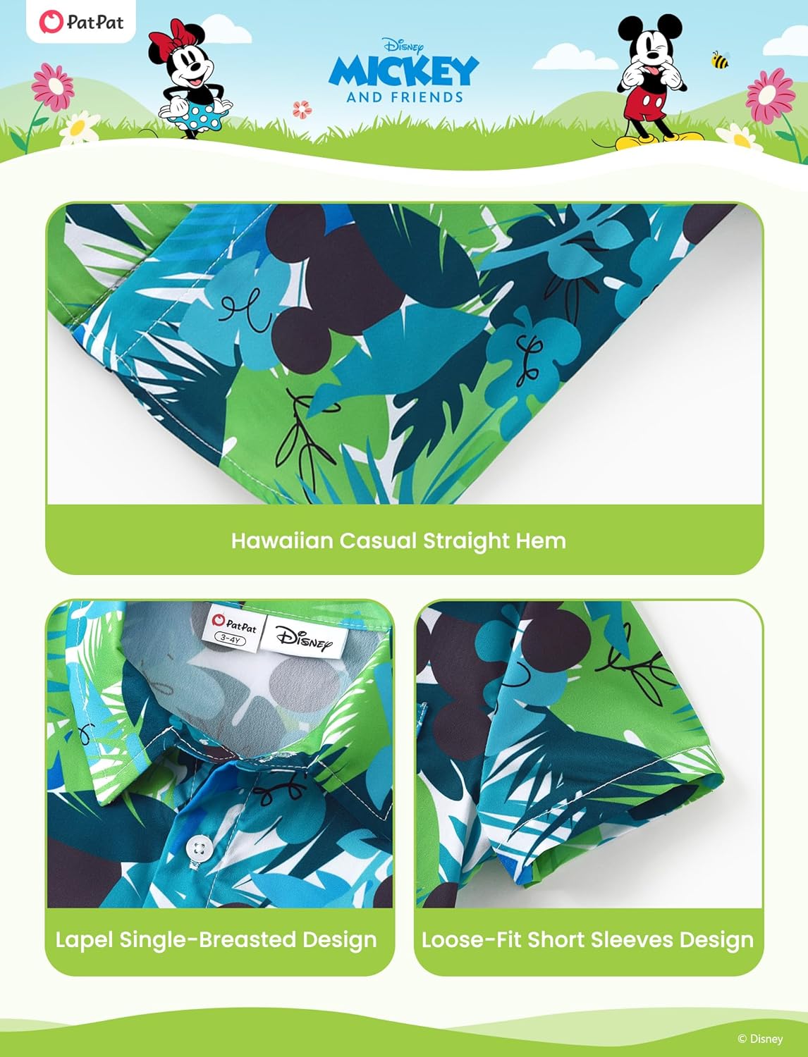 Officially Licensed Disney DesignsThis Disney Boys Hawaiian Shirt features beloved characters from iconic franchises like Spiderman, Cars Lightning McQueen, Stitch, Star Wars, Mickey Mouse, Iron Man, Lion King, Captain America, and Princess Moana. Perfect for young fans, this shirt brings fun and adventure from their favorite movies and TV shows. Whether they’re lounging at the beach or enjoying a sunny day out, this shirt lets your child show off their love for Disney in style.Soft & Comfortable FabricCrafted from a lightweight and breathable blend, this boys' Hawaiian shirt ensures comfort all day long. Perfect for sunny days, the fabric is gentle on the skin, keeping your child cool and relaxed whether they're exploring outdoors or enjoying a day at the beach. The shirt is designed for easy movement, making it ideal for playdates, vacations, and all summer adventures.Vibrant and Eye-Catching DesignsThis boys button-up shirt features vibrant, colorful graphics of favorite Disney characters like Mickey Mouse, Spiderman, and Lightning McQueen. The bold and playful prints capture the energy and excitement of each character, while the tropical elements like palm leaves and bright backgrounds make it the ideal shirt for any beach, luau, or summer-themed event.Versatile Styling for Any OccasionWhether it's a beach day, family vacation, or a fun summer party, this boys' Hawaiian shirt is versatile enough for any occasion. Pair it with shorts or jeans for a casual look that works for outdoor play, birthdays, or just lounging around. A perfect addition to any kid's wardrobe, this tropical shirt is ready for all summer activities, ensuring your little one stays stylish and comfortable.