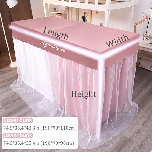This bed curtain canopy is very suitable for use in dormitories. First of all, it is very strong, and this twin top bunk bed tent canopy is very beautiful and very sentimental at first glance. Secondly, the bunk bed canopy is very convenient, it can be installed by one person, and it is very sturdy. Finally, this 4 corner post bed canopy frame is very affordable.Curtain Color: WhiteMaterial: Stainless SteelSize: Upper bunk: 74.8*35.4*43.3in (190*90*110cm)Lower bunk: 74.8*35.4*35.4in (190*90*90cm)Packing Including: 1*bunk bed canopy frame1*cloth curtain1*gauze curtainOur 4 corner post bed canopy frame brackets are suitable for bunk beds in dormitories, schools and homes.