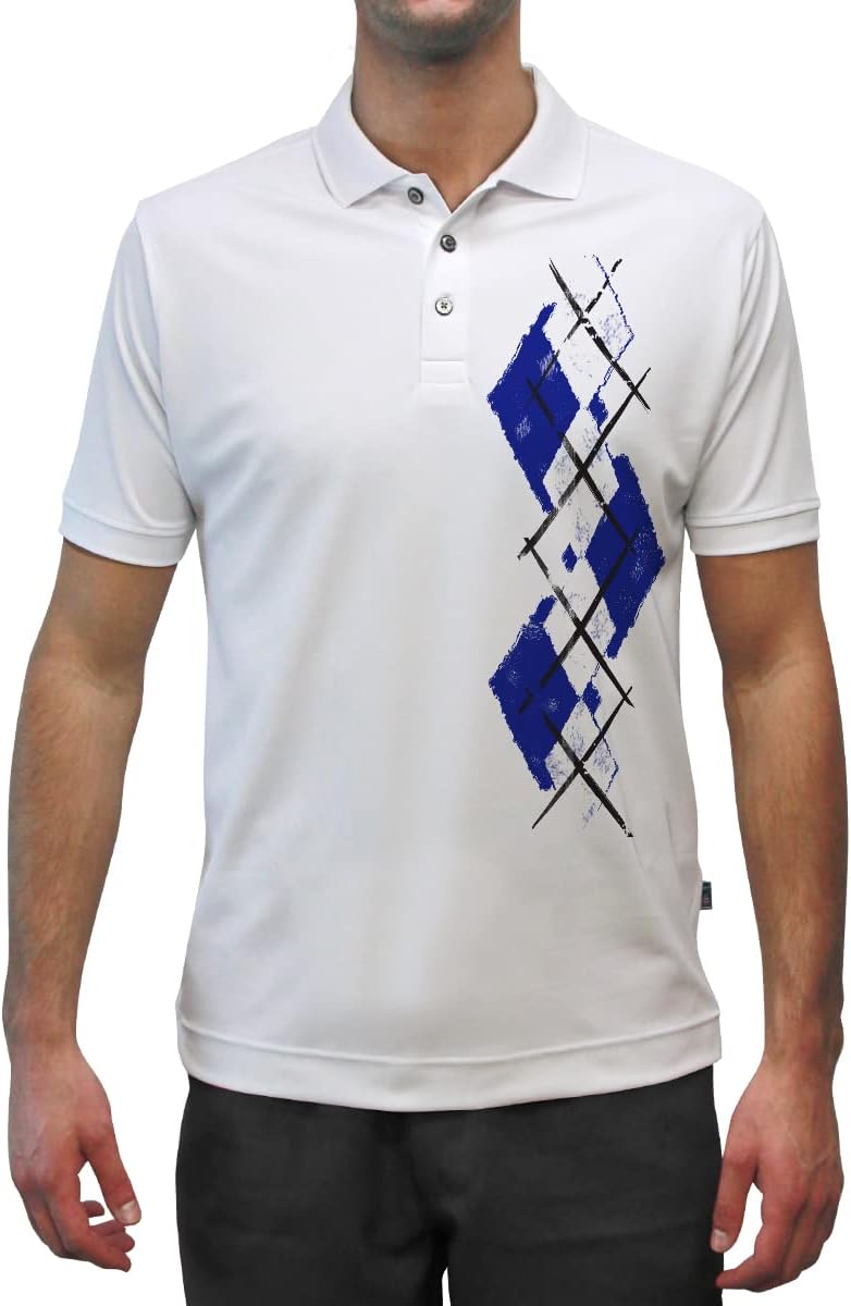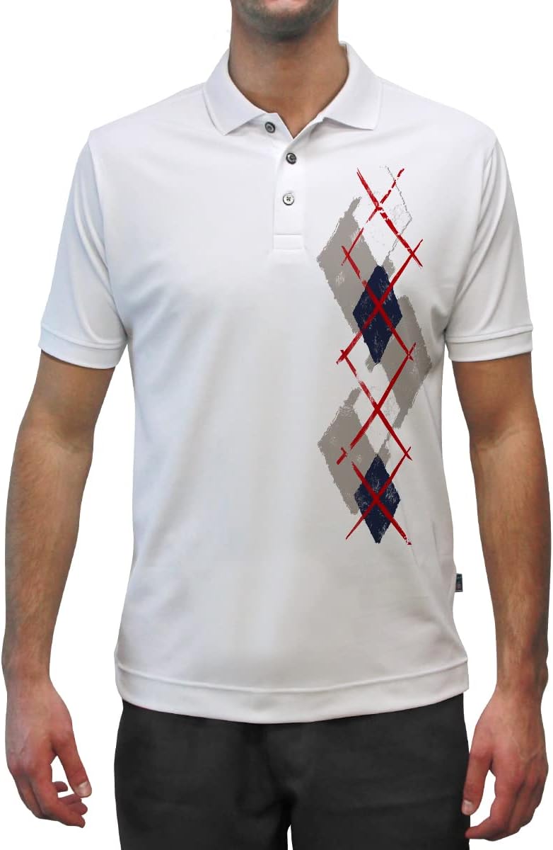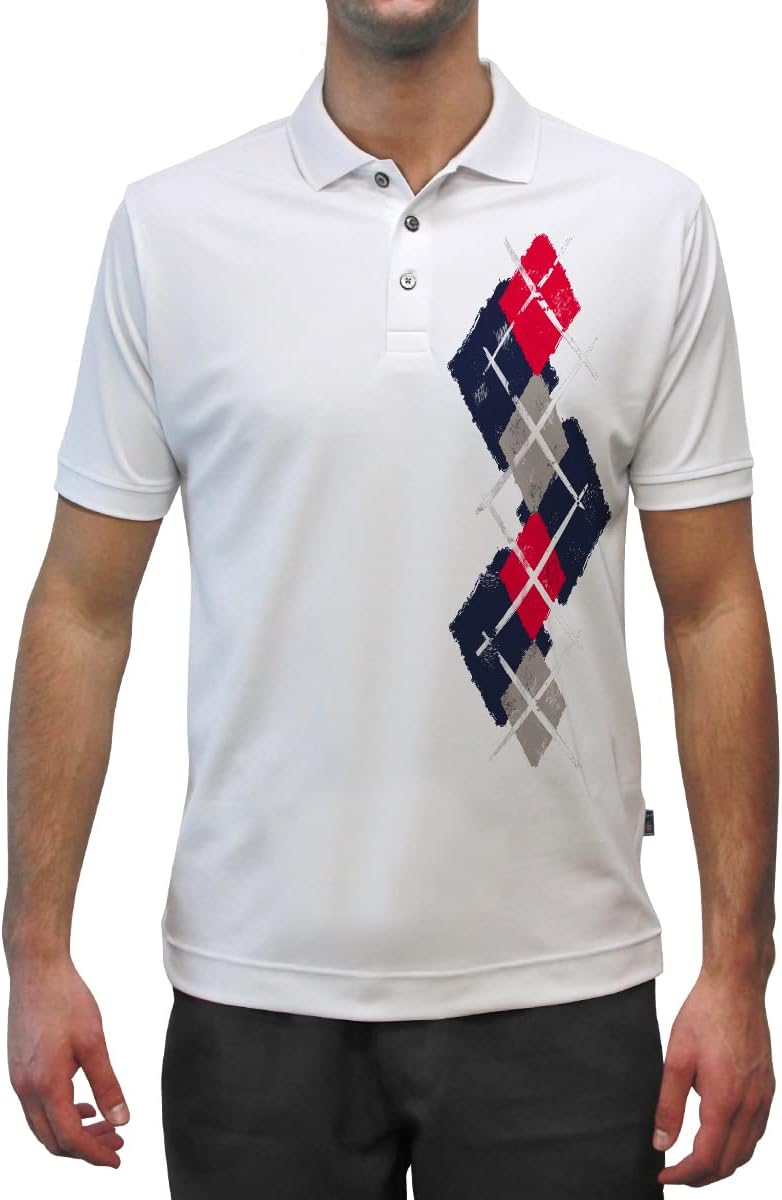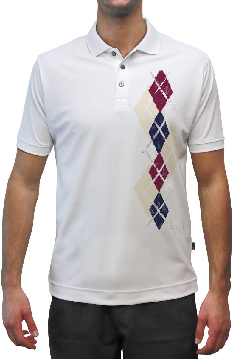 Made from 94% Micro-Polyester and 6% Spandex Dry-Fit material, Argyle Paradise Golf Polo Shirt with colorful design, Matches our Argyle Sock Patterns.