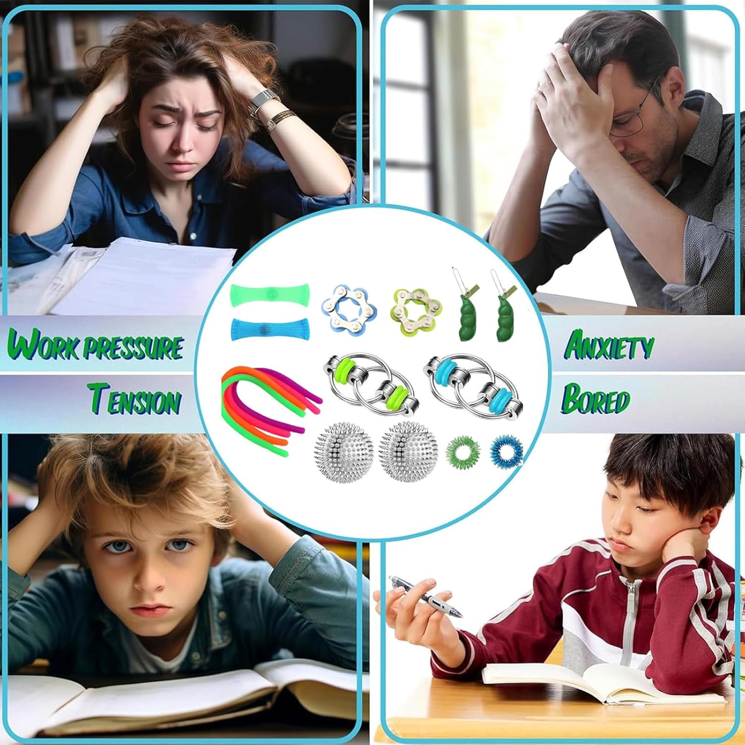 AHEJIOO Fidget Toys Set of 16, Anti-Stress Toy Box for Adults and Teenagers, Finger Toy to Soothe Anxiety, Silent Hand Toy for Office