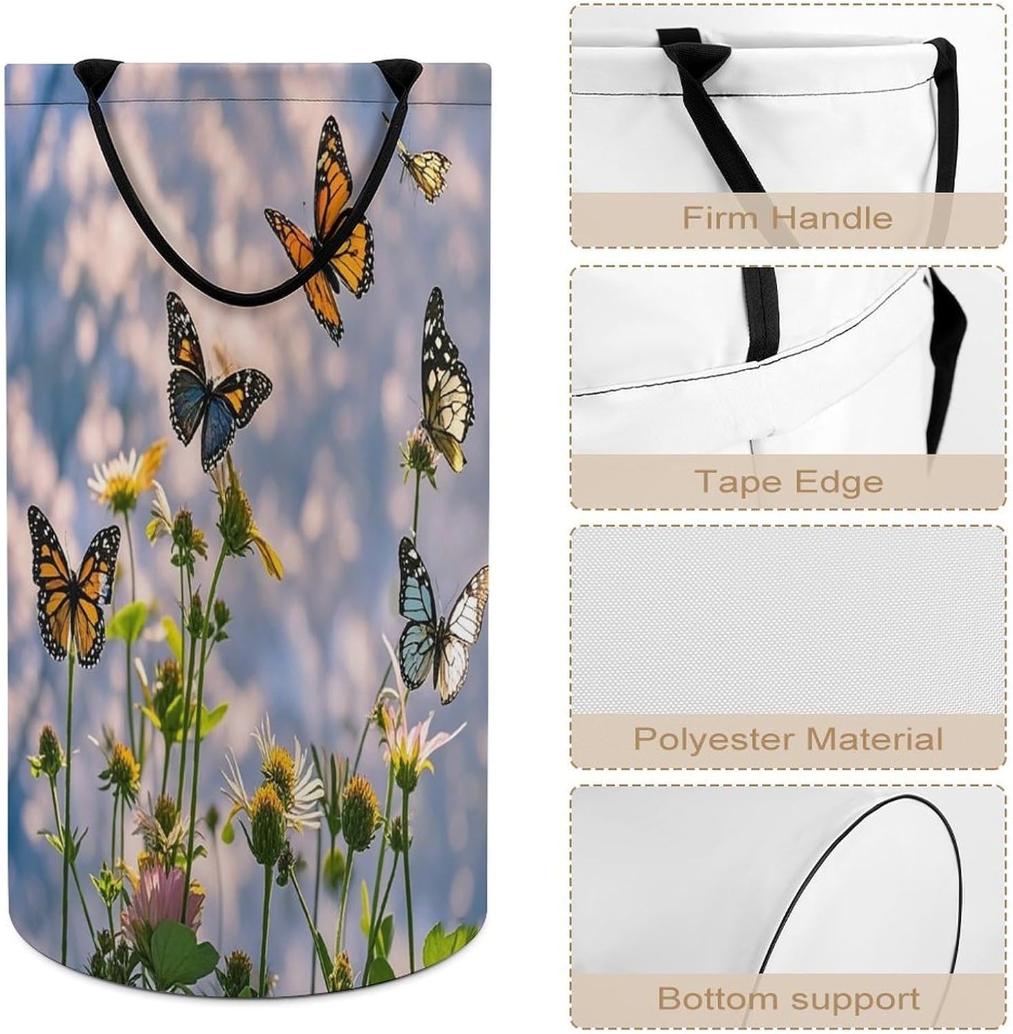 Tired of messy piles of dirty clothes cluttering your bedroom, bathroom, or laundry room? Meet your new organizational essential: the Large Collapsible Laundry Hamper, designed to blend functionality, and style seamlessly into your daily life. Whether you're a busy parent, or a frequent traveler, this versatile hamper Dirty clothes hamper clothes hampers for laundry Large Tall Clothes Basket Bin Decor Storage of Dirty Clothes is crafted to simplify your routine and elevate your space.With its generous size, this hamper easily handles a week's worth of laundry for individuals or small families, eliminating the hassle of multiple trips to the washing machine. From bulky sweaters and bed linens to towels and clothes, Removable Laundry Bags Laundry Hamper Bag Large Laundry Basket effortlessly accommodates all types of fabrics. Say goodbye to overflowing baskets and hello to a tidier, more organized home.More than just a Foldable Washing Bin Collapsible Laundry Bag Flying Butterflies laundry basket, this hamper adds a touch of modern elegance to any room. Its neutral, minimalist design complements bedrooms, bathrooms, closets, RVs, campers dorms. Use Waterproof Washing Bin Decorative Tall Hamper Large Storage Basket to store blankets, or seasonal items, its versatility knows no bounds.