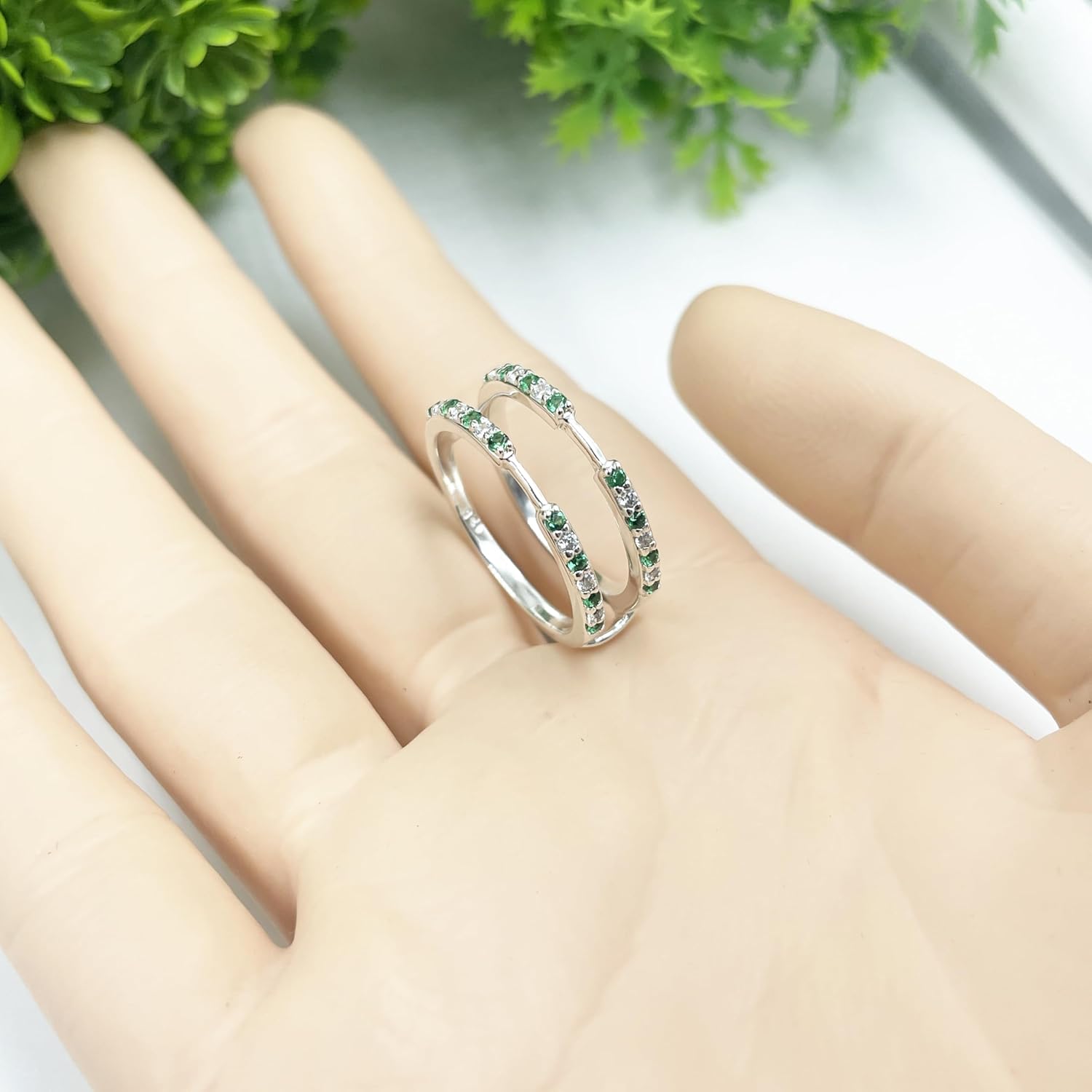 This Enhancer Crafted In 925 Sterling Silver, Available In 14K White, Yellow And Rose Gold Plating. Round Cut Simulated Green Emerald & White Diamond Set in Prong Setting.