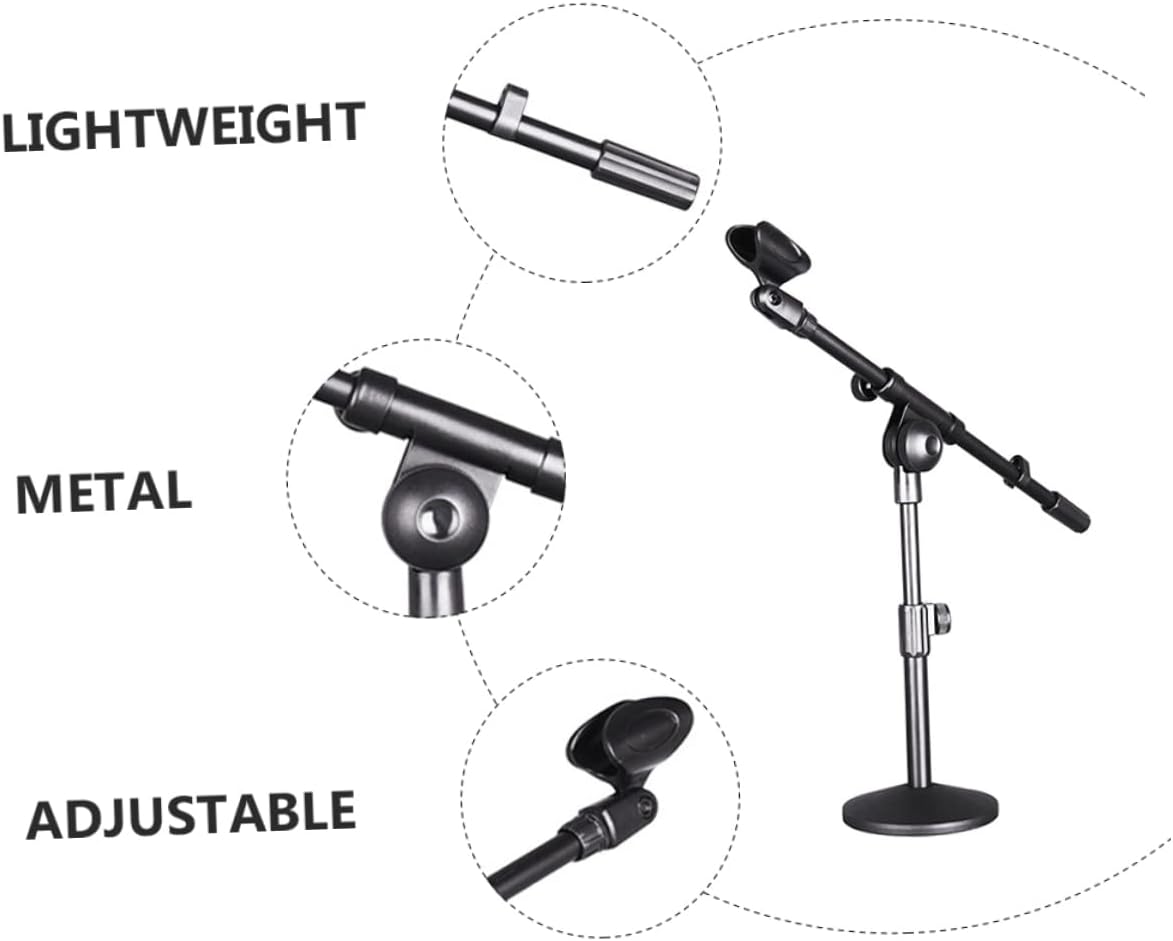 Package List 1 x microphone stand Characteristics - Color: Black Microphone Bracket. - Material: Iron Microphone Mount. - Size: About 40.00X13.00X13.00cm/15.72X5.11X5.11in Mic Mount. - Feature with flexible design, can be easily adjusted to the suitable angle as you need Microphone Support. - Professional desktop microphone stand for broadcasting, podcasting, online meeting, singing, recording, etc Mic Bracket. - With this microphone holder, you can put it on table to your hands Mic Holder. - With heavy black metal base to increase the stability but will not cause any noise while moving it Desktop Microphone Stand. - The height of this microphone stand is adjustable with a boom arm, you can adjust it to any height you want Mic Support.Goods InformationMic Support for broadcasting, podcasting, online meeting, singing, recording, etc.Mic Mount The solid stand can help keeping your device secure and stable.Universal Microphone Stand This item is a microphone stand with solid metal heavy base, it will provide stability and precise balance to avoid it from collapsing