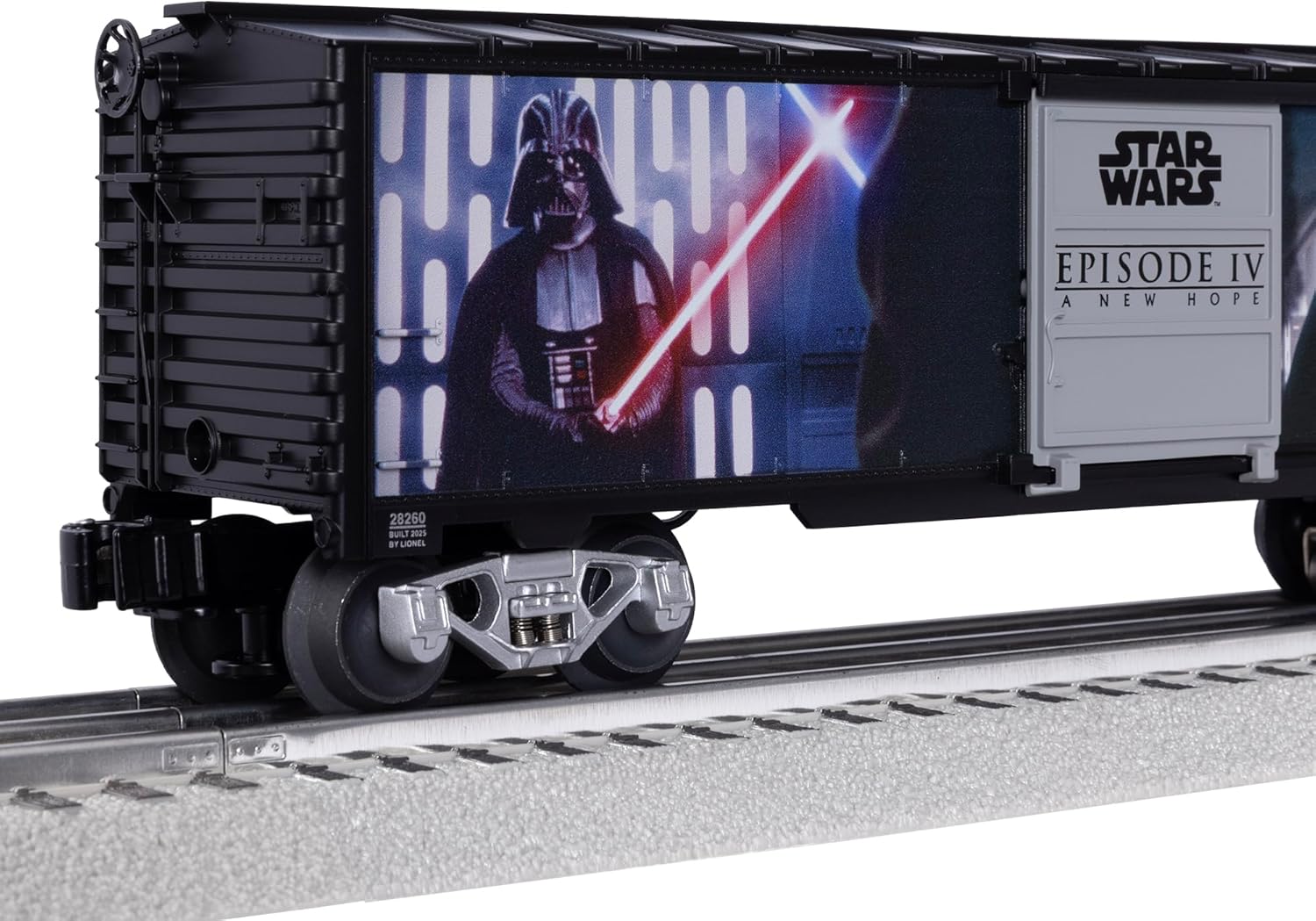 | Additional Features | Compatible with Lionel O Gauge, Die-cast metal trucks, Illuminated lightsaber graphics, Opening side doors, Operating couplers |