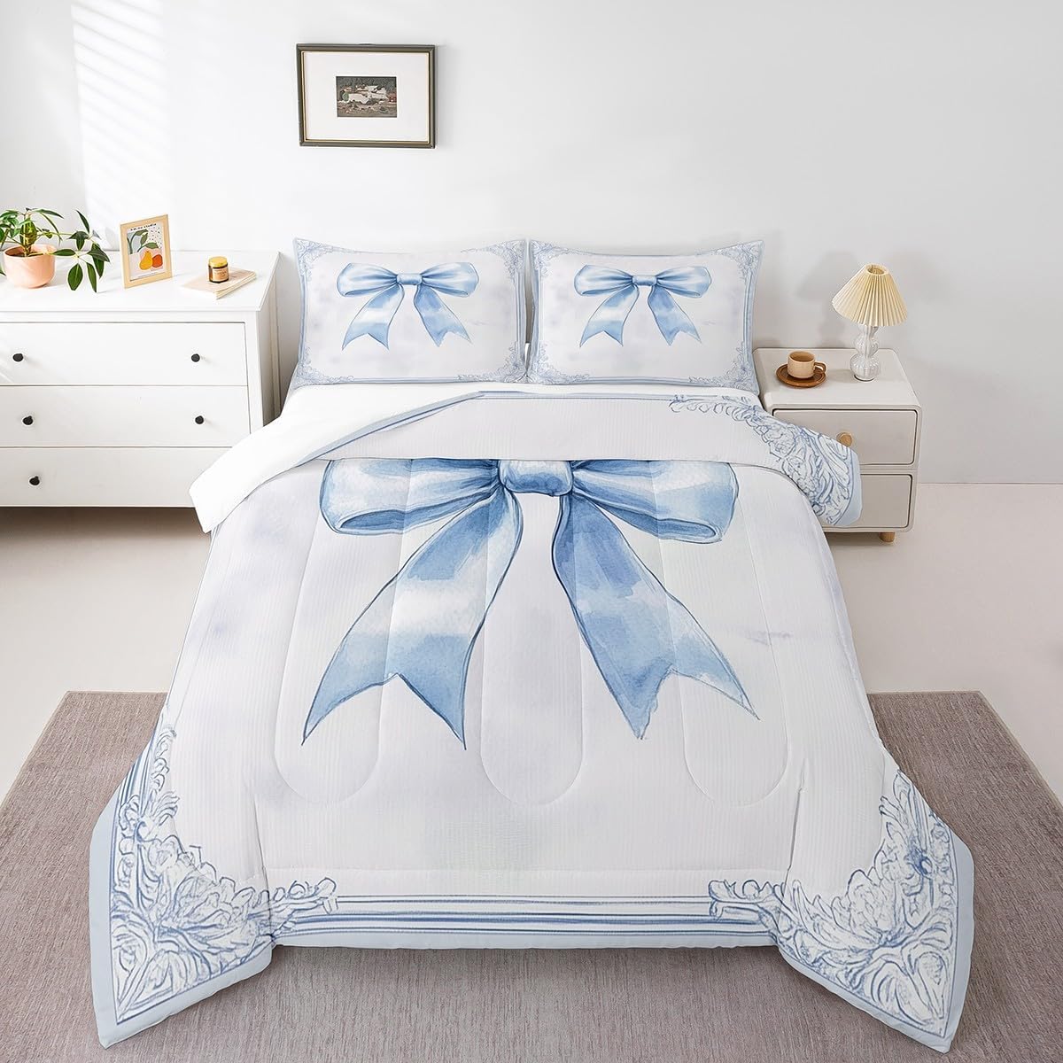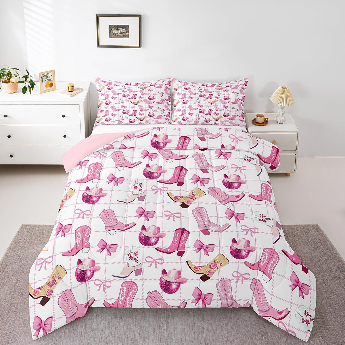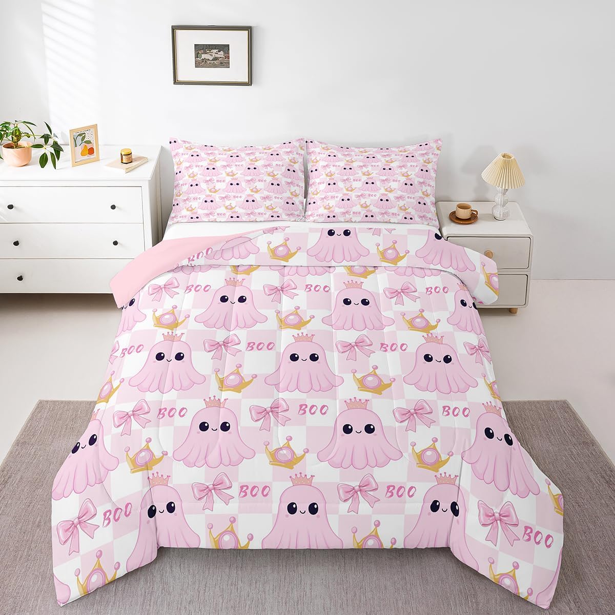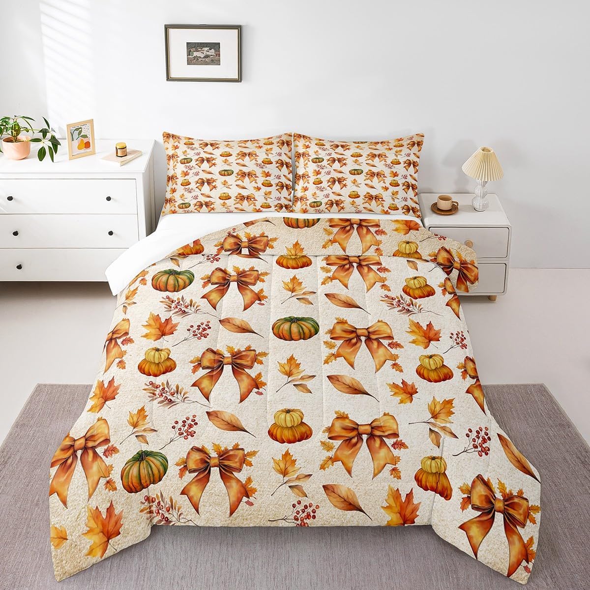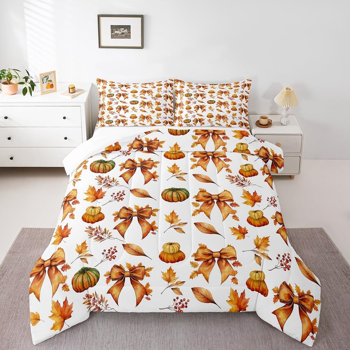 Package Include: Comforter and Pillowcase. Makeover your bedrooms every season with our Comforter sets. Perfect item for your room, girls boys youth room, master bedroom. Size Information: Twin size down comforter 68"W x 90"L and 1 pillow case 30"W x 20"L. 2pcs with 1 Bed Comforter and 1 Pillowcases in A Bag Full size down comforter 79"W x 90"L and 2 pillow cases 30"W x 20"L. 3pcs with 1 Bed Comforter and 2 Pillowcases in A Bag Queen size down comforter 90"W x 90"L and 2 pillow cases 30"W x 20"L. 3pcs with 1 Bed Comforter and 2 Pillowcases in A Bag King size down comforter 104"W x 90"L and 2 pillow cases 36"W x 20"L. 3pcs with 1 Bed Comforter and 2 Pillowcases in A Bag Useful and practical A luxurious product for homes, dorm rooms, hotels, guest rooms. Practical to use for being polyester, feels like cotton which is Super Soft and Breathable. No chemicals used, No dye substance harming the health of you or your family. Unique design: Vivid Colors won't fade thanks to new 3D digital printing methods. These unique designs match well with various color palettes of your rugs, curtains, headboard, furniture, and all other decor accessories. Personalized: As manufacturers of digital printed home textiles, we follow current trends and bring you the latest home fashion. More Decor: Search our store to get more christmas theme, new year theme, autumn fall theme, any holiday theme, modern abstract, farmhouse rustic theme, simple pattern, garden flowers etc. home decoration. Warm Tips: 1. Please allow 1-3cm error due to manual measurement. 2. Actual color may vary from the color on your screen due to monitor color restrictions.