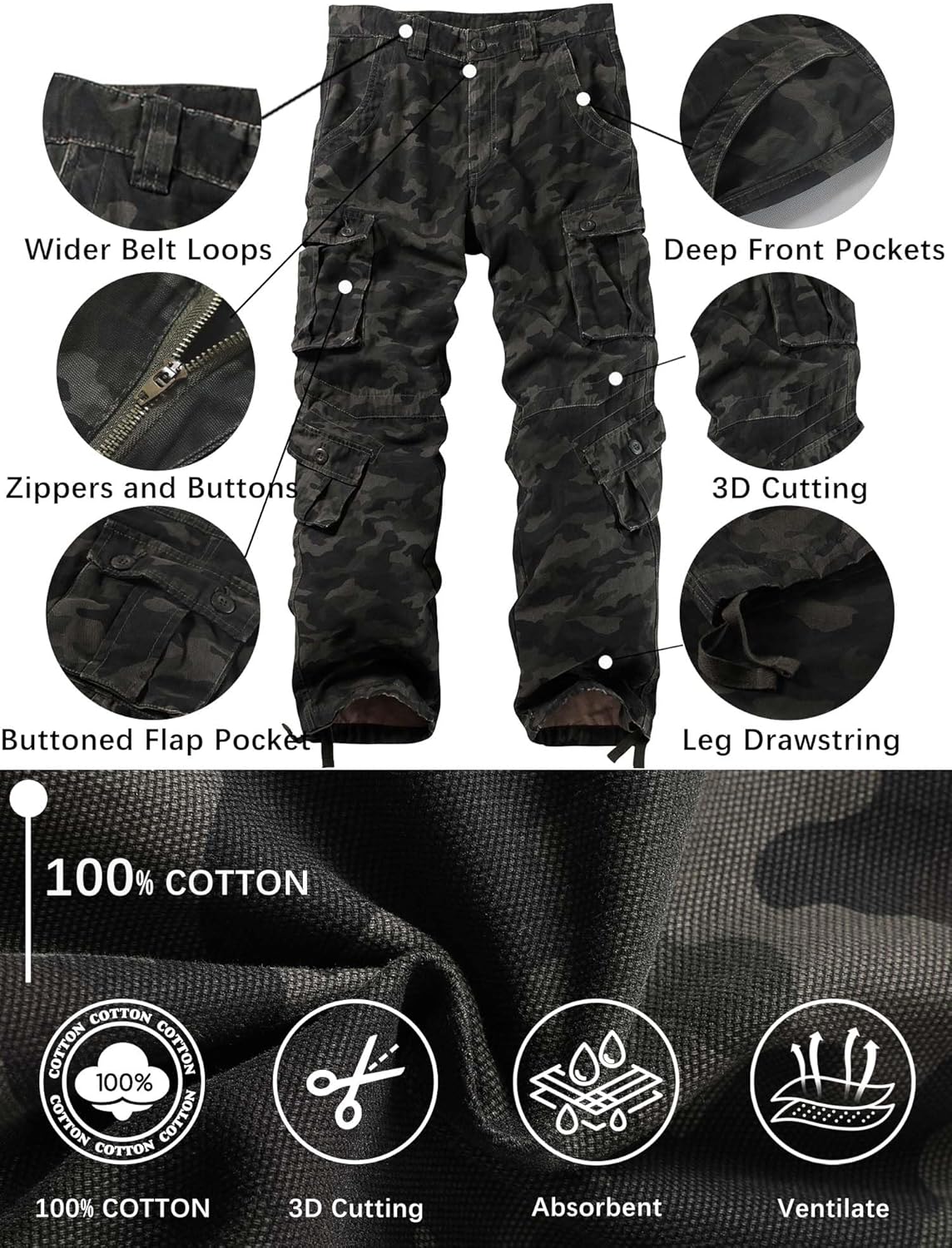 This men's military cargo pants will not resist your legs when you do outdoor sports, breathable and lightweight fabric keep you comfortable all day.It is a good choice for leisure time or games for the cool and fashion design and it has 8 large flap pockets for wallet and phone, more safe and reliable,is ideal for casual wear and outdoor recreation.It is a good gift for husband/boyfriend/father/grandfather etc. Utility hiking pants for durability, ruggedness and reliability, for daily wear or outdoor activities such as hiking, hunting, skateboard, fishing, hunting, travelling, backpacking, camping, jogging, walking, stay at home or daily work, can be worn all year round.