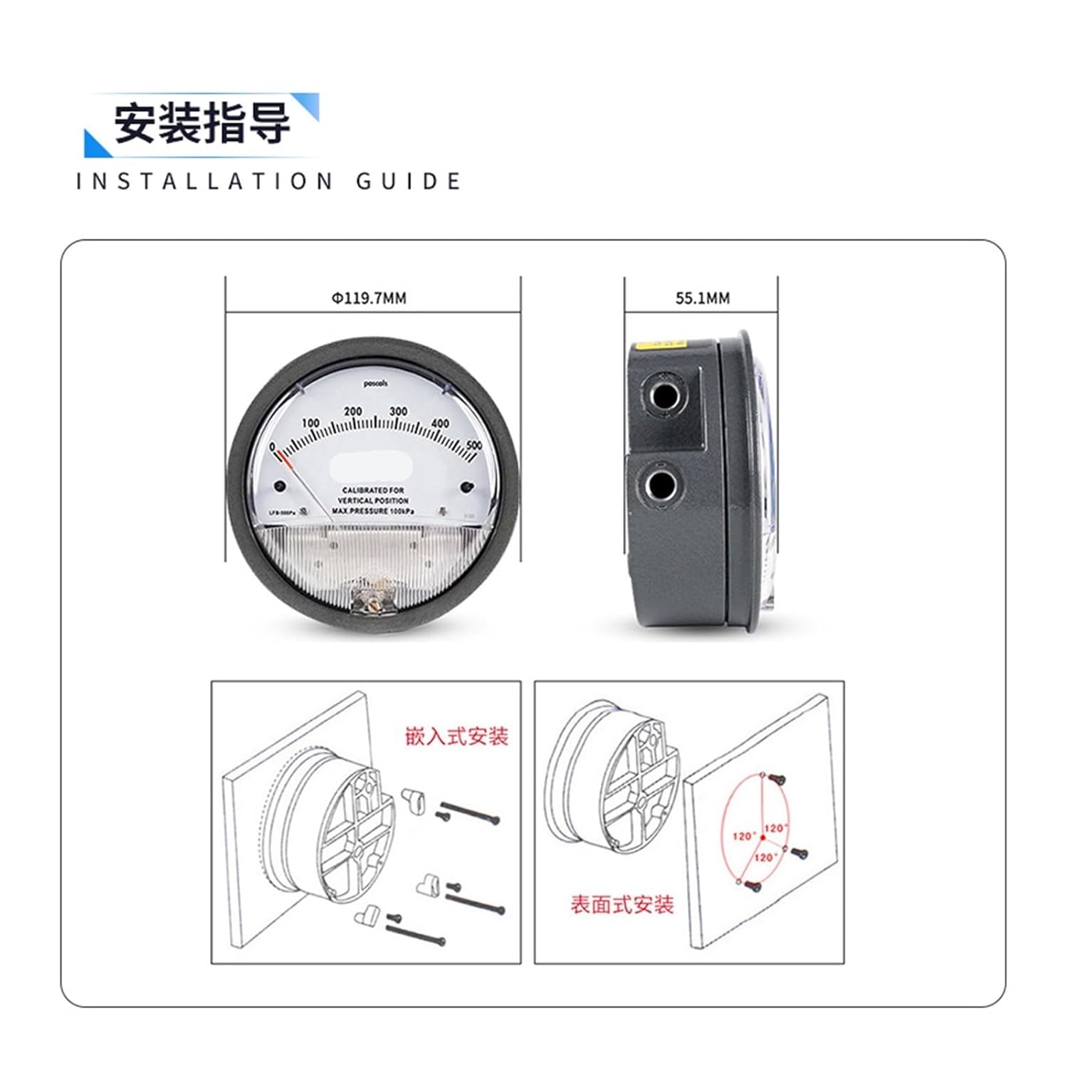 Temperature Probes & SensorsMicro pressure differential gauge differential pressure gauge clean room differential pressure gauge nucleic acid detection positive and negative pressure ward mechanical pointer gauge