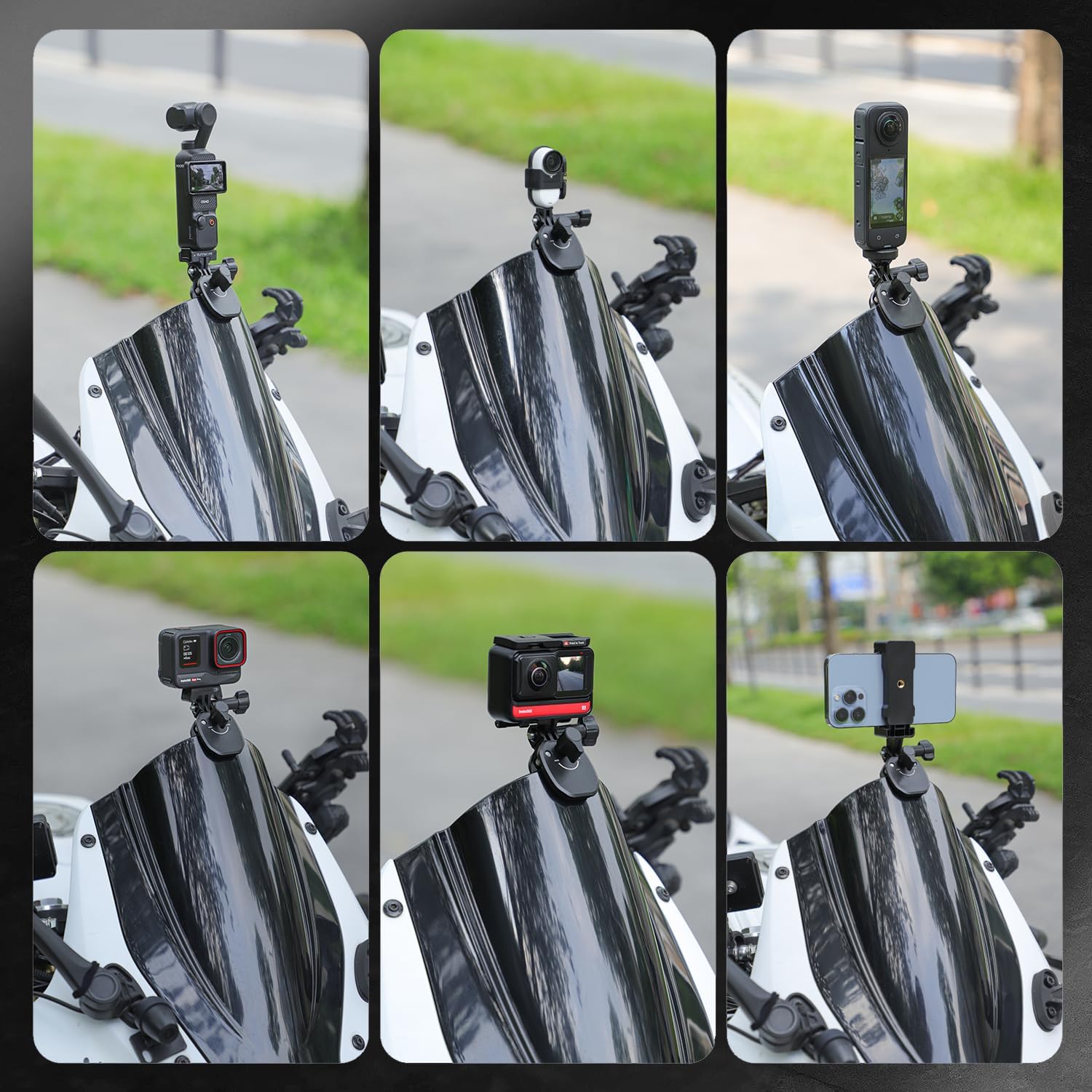 Motorcycle Bicycle Double Clamp Mount with 47" Invisible Selfie Stick Motorcycle Windshield Mount Clamp Clip Aluminum