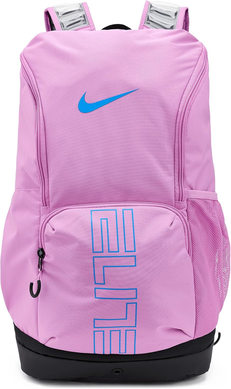 Nike Hoops Elite Pro Basketball Backpack features multiple small-item pockets and a separate, ventilated compartment for your shoes. Its shoulder straps feature Pro Adapt technology for comfortable carrying. Large, zippered main compartment provides space for your gear. Ventilated shoe compartment can hold up to a size 15. Nike Pro Adapt shoulder straps provide comfort. Zippered foil-lined pocket offers space for your favorite beverage. Haul loop at the top for an alternative carrying option. Padded internal sleeve safely stores a laptop. Water-resistant coating helps keep your gear dry.
