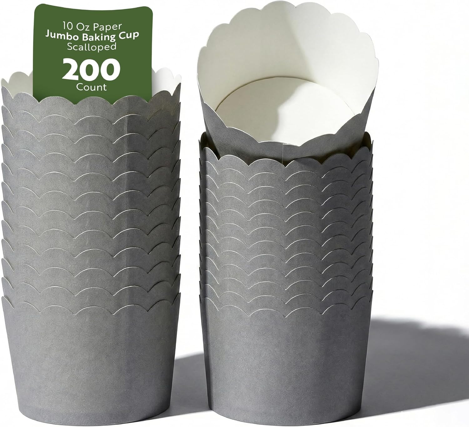 Create visually appealing and easy-to-release baked goods with Panificio Scalloped Edges Jumbo Cupcake Liners. These greaseproof baking cups boast a greaseproof lining that expertly prevents sticking, ensuring your cupcakes and muffins release effortlessly for a pristine presentation. The scalloped edges enhance the visual appeal of your confections, making them stand out as decorative cupcake liners in any bakery or café display. Designed in a vibrant turquoise color, they add a pop of color to your baked creations, drawing attention from passersby. With a generous capacity of 10 ounces and dimensions of 3.5 inches by 3.5 inches by 2.5 inches, these liners are perfect for jumbo-sized cupcakes or muffins. Choose these liners to streamline your baking process and enhance customer satisfaction. Each order includes 200 Panificio Scalloped Edges Jumbo Cupcake Liners.