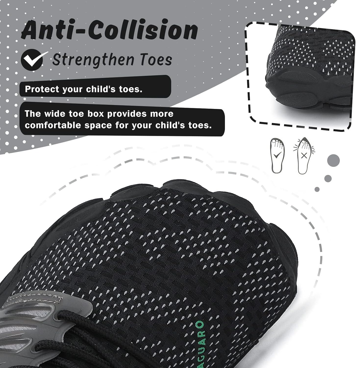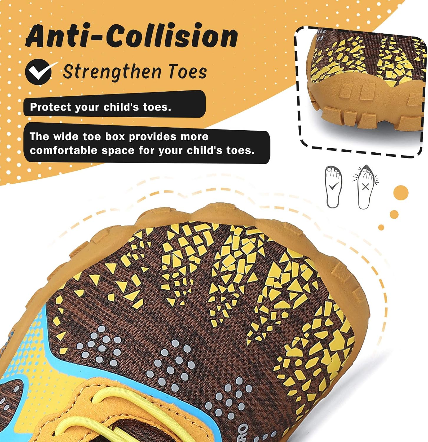 • SAFETY & SLIP RESISTANCE: Made by high density rubber, the anti-collision toe and outsole protects kids from being hurt by stones, sticks, shells or sharp objects. The deep concave-convex textures of outsole offer excellent grip and prevent slips and falls.