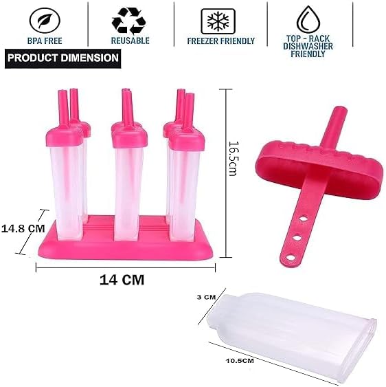 BEST POPSICLE MOLDS ON AMAZON WHICH IS MADE IN BHARAT! – Our popsicle mold has an eco-friendly reusable design. Our molds base measures 16.5Cm X 15Cm X 14.5cm, Single Mold Size: 10.5Cm X 3Cm. OUR ICE POP MAKER ARE SAFE AND USER FRIENDLY - 100% BPA free, our ice pop molds are made up of durable good quality plastic for long lasting use in your home. EASY TO USE: This popsicle molds bpa free easily pops out once frozen. Thanks to the lids’ no-click closing system, theice popsicle molds are easy to remove. EASY TO CLEAN - Hand Wash or Dishwasher: The good news is that these moulds are dishwasher-safe. Place them in the dishwasher for a hassle-free cleaning experience. Alternatively, you can hand wash them with mild soap and warm water.