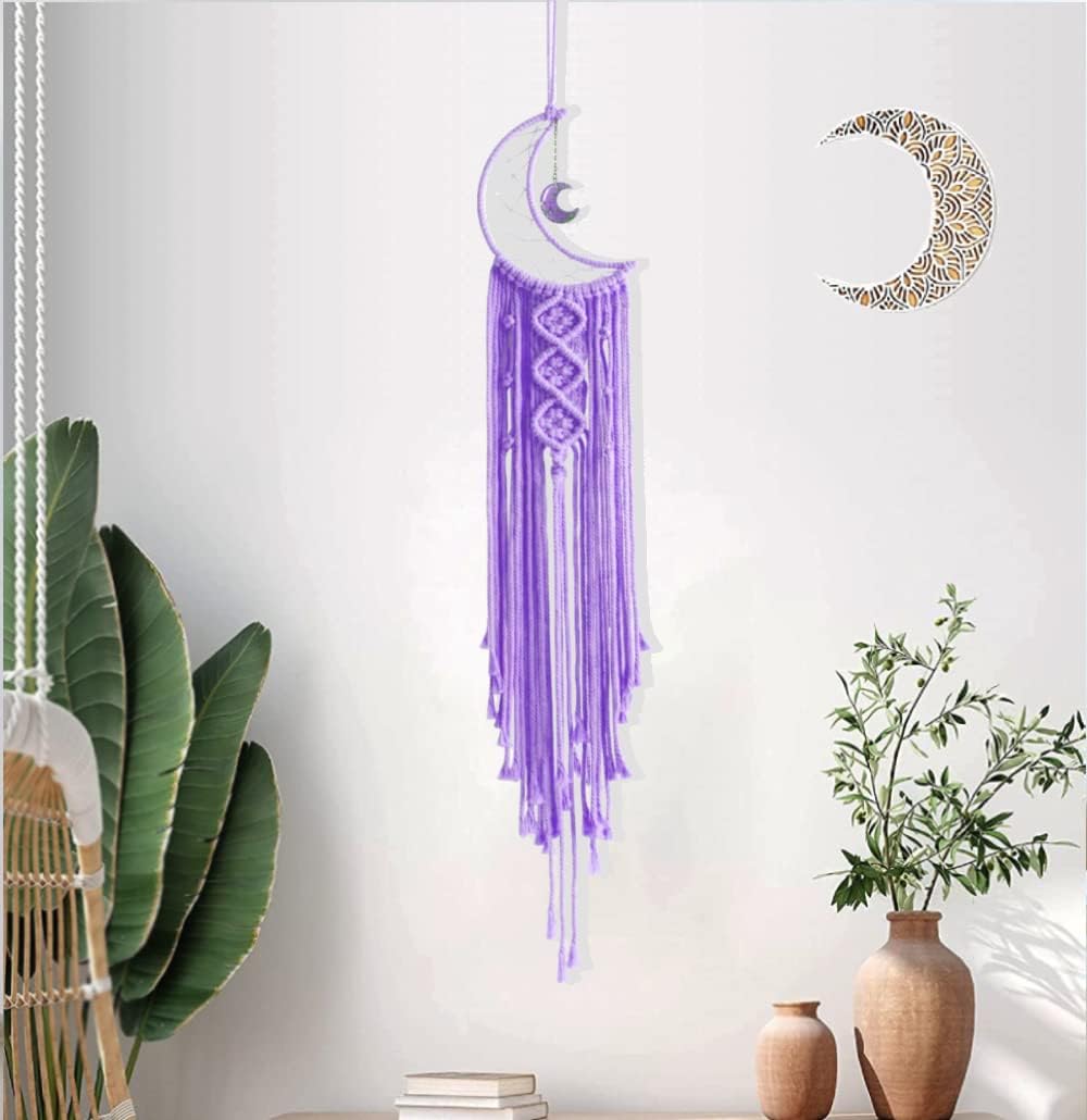 Dream Catchers Purple Moon Dream Catcher with Light, Dream Catcher for Girls Bedroom Decor for Women, Macrame Dreamcatcher Boho Room Wall Decor for Teen Girls Birthday Gifts Women Purple Gift