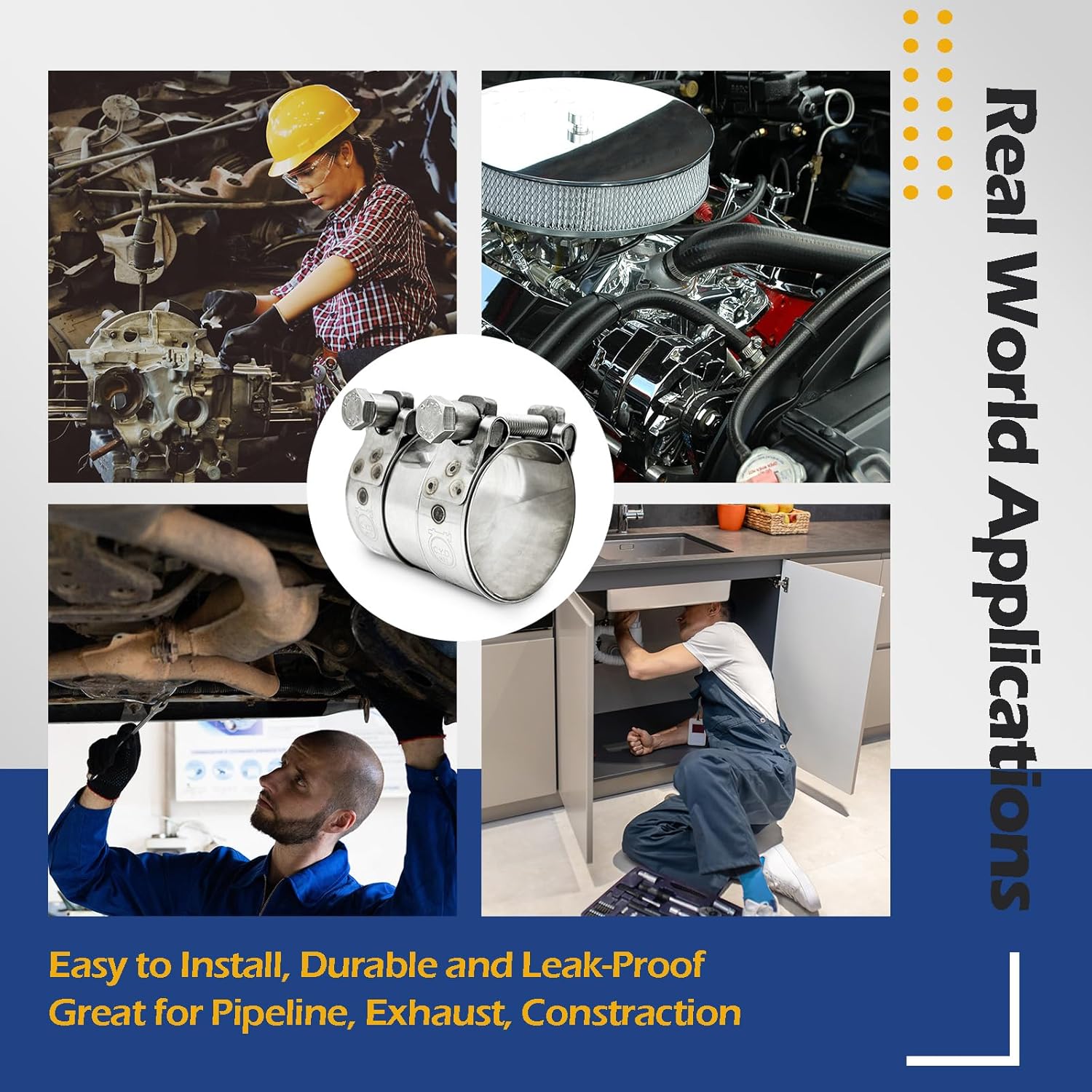 • 【Versatile Performance】Excels in automotive exhaust system, industrial pipeline connection, agriculture irrigation, and chemical equipment maintenance. Great for iron cast pipe connections and muffler repair, our clamps are the go-to seal solution.