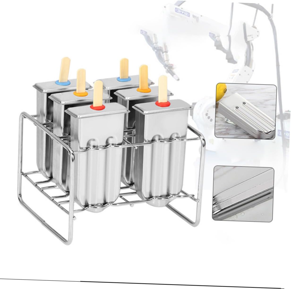 VALICLUD 6pcs Stainless Steel Popsicle Molds with Double Groove Ice Cream Maker Tools for Homemade Treats for Parties and Summer Fun