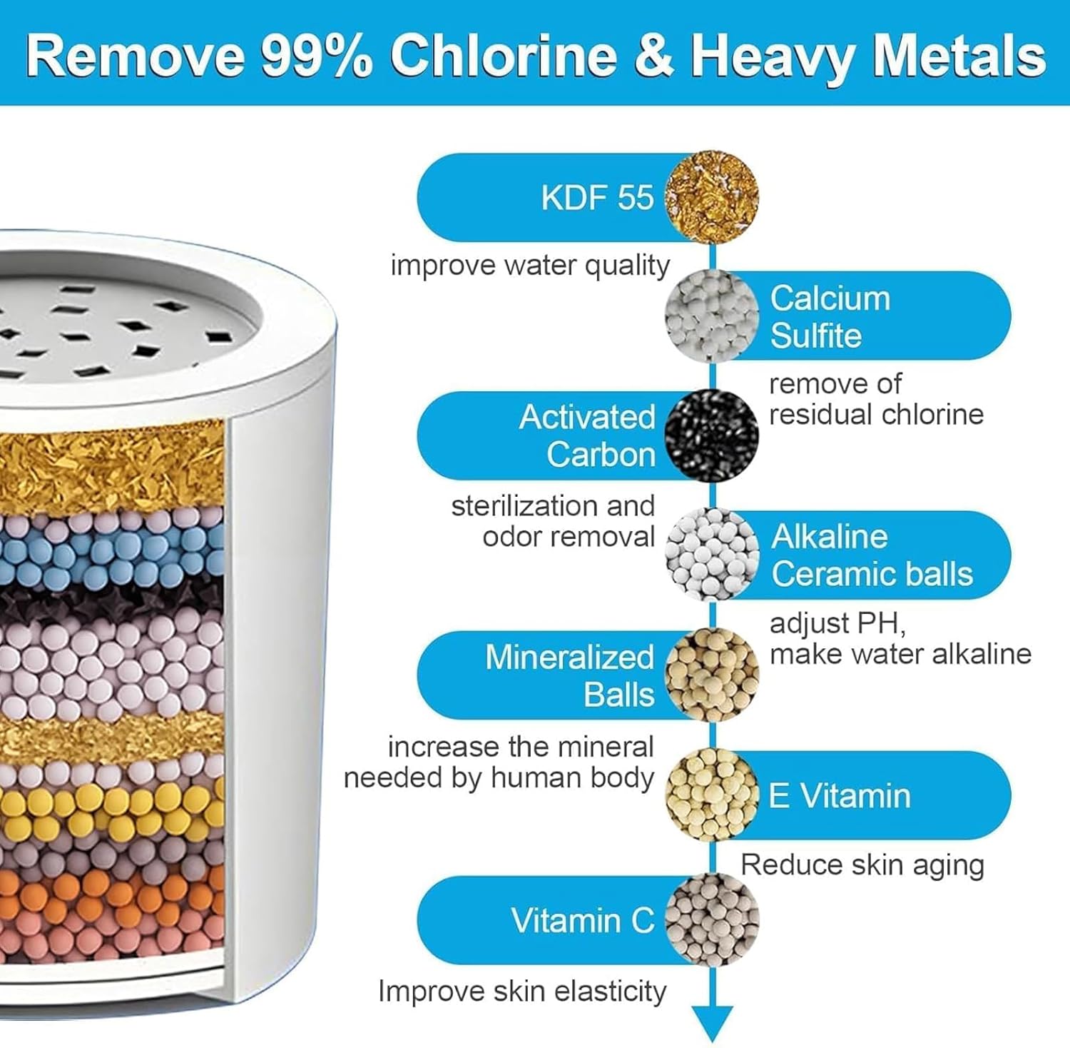 The Yodel Shower Filter is designed to transform your daily shower into a spa-like retreat by effectively softening hard water and removing 99% of chlorine, heavy metals, and impurities. Ideal for hard water issues and improve you skin, hair,nail condition.